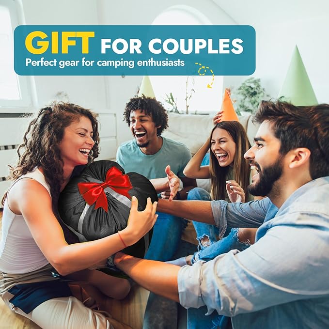 • KEEP WARM IN COLD WEATHER: Stay warm and cozy at 60°F with CANWAY double sleeping bag. Our all weather sleeping bags also have a waterproof, weather-resistant design to keep you warm even in extreme conditions and prevent you from any dampness - this is achieved through double-filled technology and S-shaped quilted design