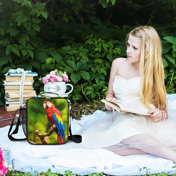 Parrot Lunch Bag, Tropical Bird Parrot Kids Lunch Box Reusable Insulated Lunch Bag for Boys Girls Back to School Thermal Cooler Lunch Tote Leakproof Lunch Box with Shoulder Strap for School Daycare