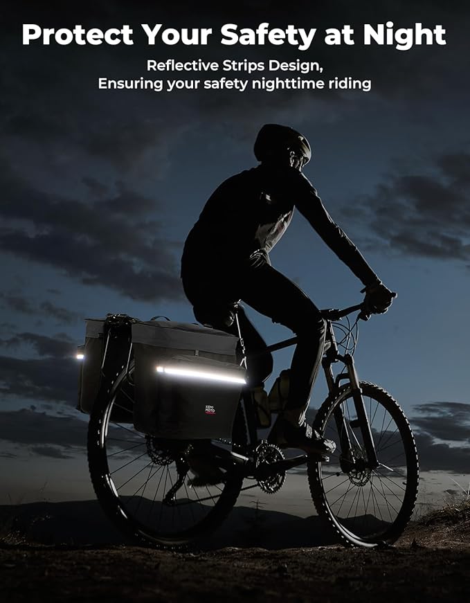 • Large 34L Capacity: This Kemimoto bike bag has been upgraded to a large capacity of 17L per bag, and the total capacity of 2 bags is UP to 34L. Includes 2 main compartments for each bag. Plus the 2 pockets on the outside, ideal storage for daily essentials, biking gear, cycling accessories. Ideal for grocery, commuting, and outdoor trips