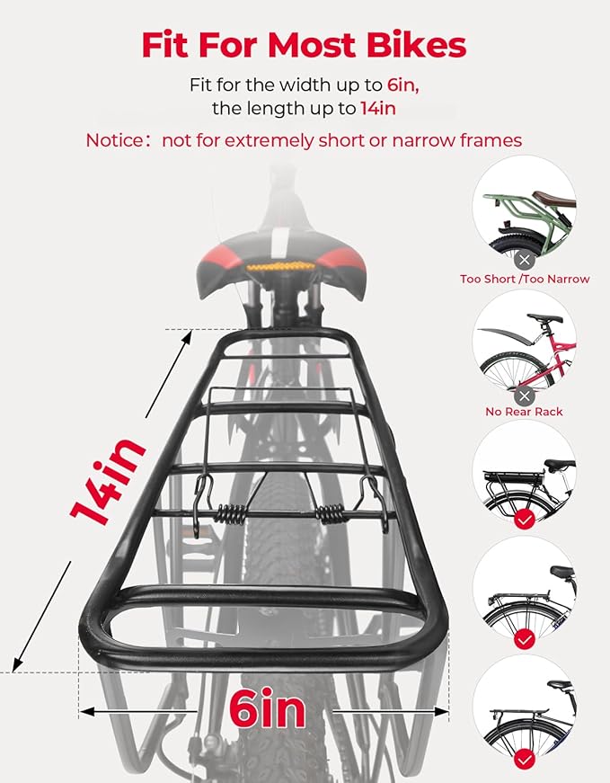 • Compatibility: Fits most bike racks, including those for city, mountain, road, electric, and hybrid bikes, etc. Please confirm your bike rack size before purchasing. Compatible: Support for Width Less Than 6 inches Bike Rack