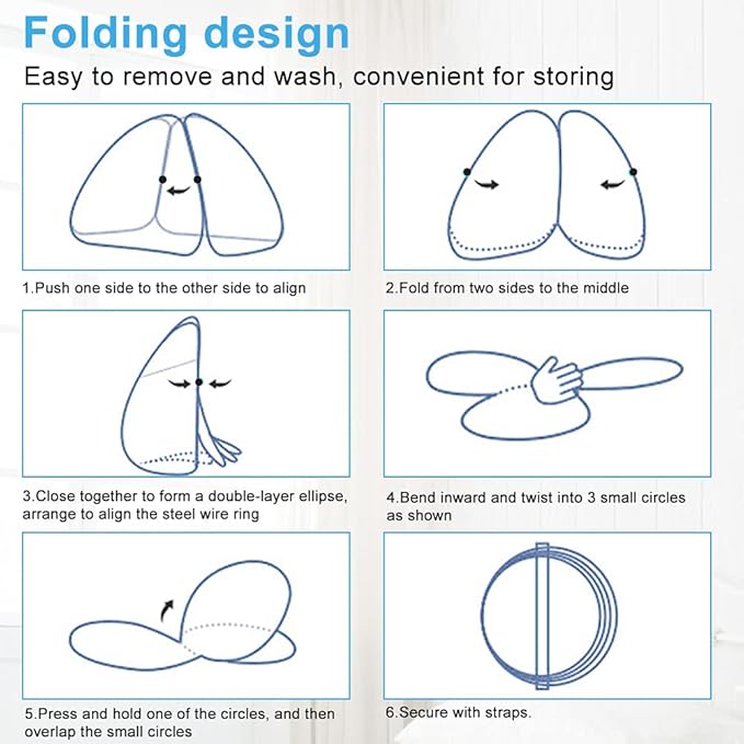 • [Preminum Quality]: Polyester,Fine Sewing.The mosquito net structure is made of high-strength stainless steel wire, which can be bent freely at 720 degrees and is not easy to break. There is a special small fan zipper opening on the top of the net, which can be hung with a small fan.