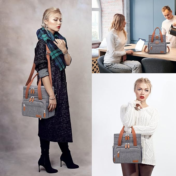 Weitars Lunch Bag for Women Men, Loncheras Para Mujer Dual Compartment Waterproof Reusable Large Lunch Box Wide-Open Cooler Tote Bag For Working Picnic Hiking (15L) (Gray(kahki))
