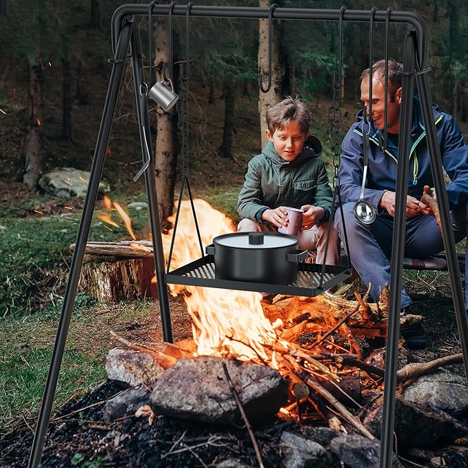 • 【Perfect Outdoor Camping Grill】Enjoy food and cooking fun with the swing grill!If you want to go camping in the backyard,host a barbecue party amily party on the beach,have a BBQ party in your garden or campfire party at any outdoor space,our swing away campfire grill is definitely the best choice,it will add unexpected camping fun to your outdoor ctivities!When not grilling,you can use it to hang your dutch oven,kettles,teapots,lanterns,grilling tools,as well as other campsite accessories