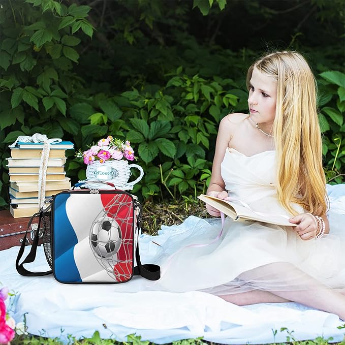 Pardick Soccer Insulated Lunch Bag for Boys Kids Sport Football Lunch Box French Flag Tote Bag Reusable Lunch Cooler Containers for School Picnic Work Travel Outdoor