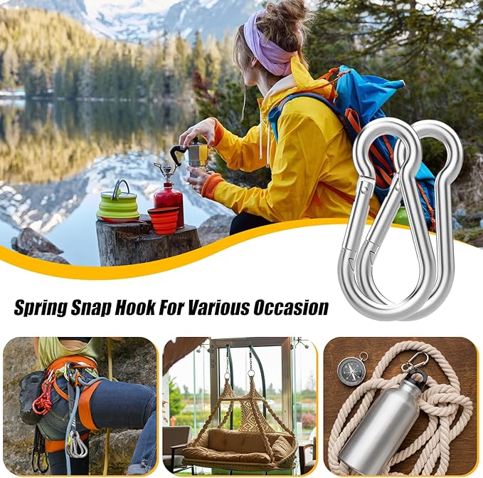 • VERSATILE USAGE QUICK LINK CHAIN - Multipurpose snap hooks are the perfect carabiner accessories for outdoor activities, such as swing set, gym, camping, hiking, boating, fishing, traveling. Also good for quick household attachment of keychain, rope and backpack.