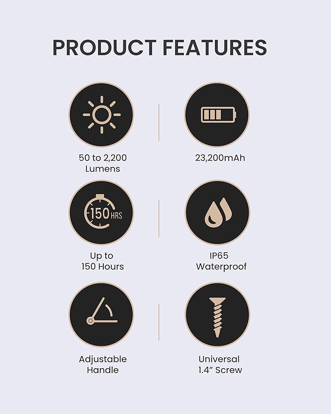 • POWERFUL 23,200mAh PORTABLE LANTERN: Ultra2 3.0 electric lantern outdoor light and power bank is wireless, it is compact and have 3 color modes. It comes with an insanely large battery capacity of 23,200mAh and 2,200 lumens. We applied high-grade built-in LED chips to increase the product lifetime use to up 150 hours per full charge. We built a quality product that will bring you greater power and performance than ever before!
