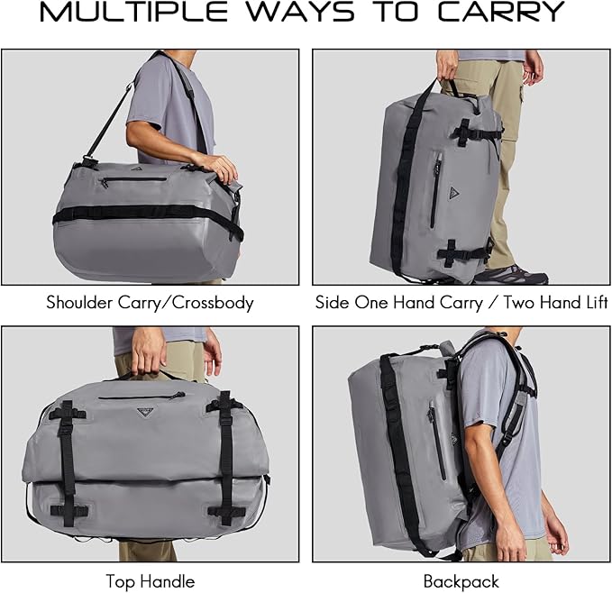 Haimont Large Waterproof Duffel Backpack Roll-Top Heavy Duty Dry Duffle Bag for Boating, Travel, Motorcycle, Kayaking, Camping, 60L