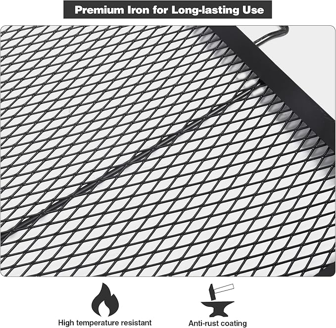 • 【Superior Material】 Lineslife square fire pit grill grate is made of premium iron with paint on the surface, which is durable, food-grade, rust-proof and high-temperature heat resistant. It can be used for a long time.