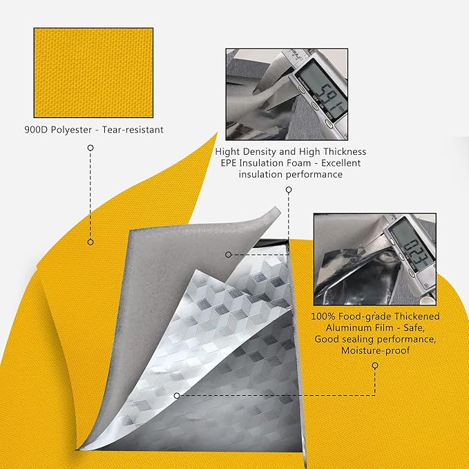 • HIGH QUALITY: The insulated lunch bag is lined with Food-grade thickened aluminum foil, padded with high density EPE foam, and outlayer is made of premium waterproof fabric, Dual SBS zipper is smooth and durable.Exquisite sewing technology makes this reusable snack bags more reliable and durable