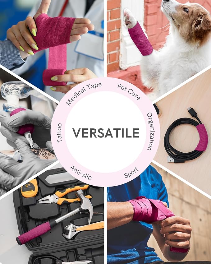 • Care and Comfort Combined: Prepare for all occasions with our magenta self-adhesive bandage pack of 6 rolls. Whether you're seeking optimal wound care or protecting a fresh tattoo, our bandage offers the perfect balance of comfort, flexibility, and reusability.