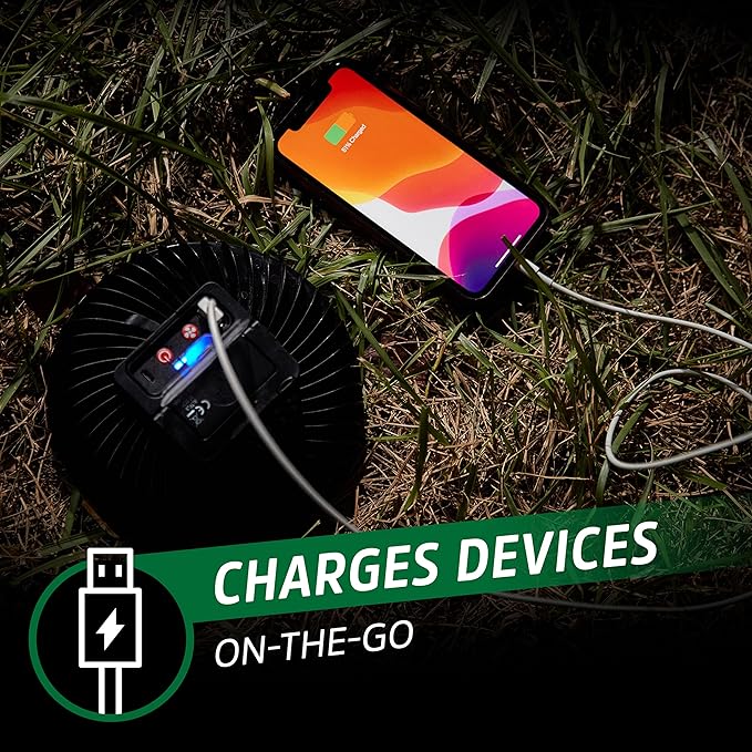 • Rechargeable: The light & camping fan can be recharged in 3.5 hours and features a USB port-out that allows you to easily plug in and charge your devices at the campsite