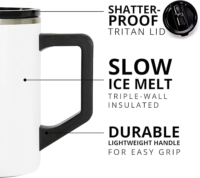 Elemental Insulated Coffee Mug - Triple-Wall Stainless Steel Summit Travel Cup for Hot and Cold Drinks - Thermal Coffee Mug with Lid and Handle for Camping, Office & Travel 16oz - White