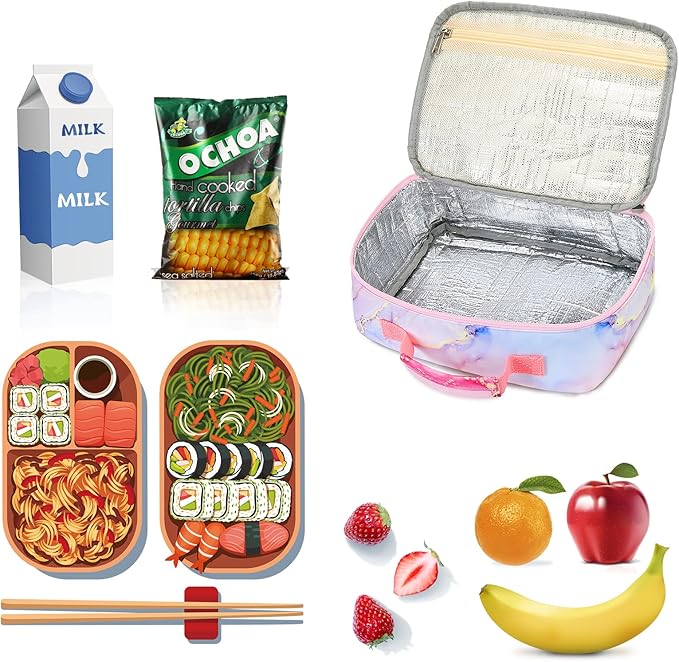 • It's super popular and very classy with beautiful pink marble pattern,The lunchbox bag is leak-proof and friendly to carry on.The bag is suitable perfect for kids, children, girls to school, women to work. You will love to bring this adorable insulated lunch box to school everyday!