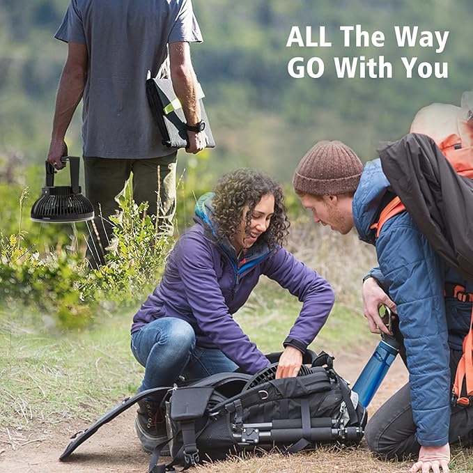 • REAL 10000mAh BATTERY: This cordless fan with built-in polymer rechargeable battery, save you from buying additional batteries, supports the fan to run up to 20 Hours, grant you a cozy outdoor night without worry of battery running out, a must take gear for camping, fishing, hiking and a survival kit for emergencies like hurricane storm