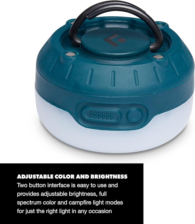 • Two button interface is easy to use and provides adjustable brightness, full spectrum color and campfire light modes for just the right light in any occasion