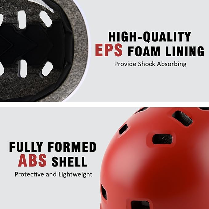• The kids bicycle helmet is made of rugged ABS shell and shock-absorbing EPS foam to provide comprehensive protection.