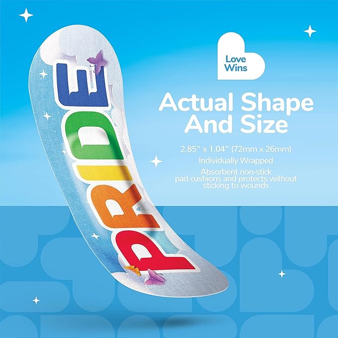 • LGBTQ PRIDE BANDAGE: This 50 piece pack of rainbow shaped Pride bandages help to support the LGBTQ+ community while protecting wounds such as cuts, scrapes, and burns; sticky bandages are perfect for adults