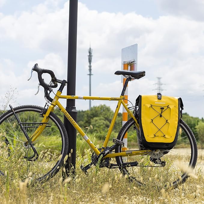 • Fully Waterproof: The bike panniers adopt roll-top closure design, excellent for preventing water flow into the bike panniers. Made of PVC net clamping cloth, super durable and completely waterproof, keeping your contents dry even in a adverse conditions. Easy to clean surface with a wet cloth.