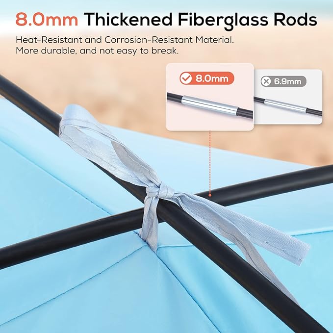 • Upgraded & Durable Design: 8.0mm IMPORTED fiberglass frame is safer, more durable and rust free, which support tent stably stand by itself and keeps shape after long time use