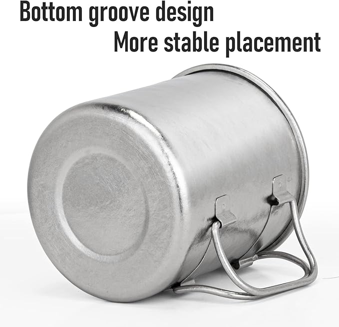 • ☕Multi-Purpose: Can be used as a small boiling pot, tea cup, coffee mug, water mug, or heating container, or container for survival items. Meet most of your outdoor cooking and survival needs. More durable, solid and sturdy than other metals, high resistance to extremely low or high temperature.