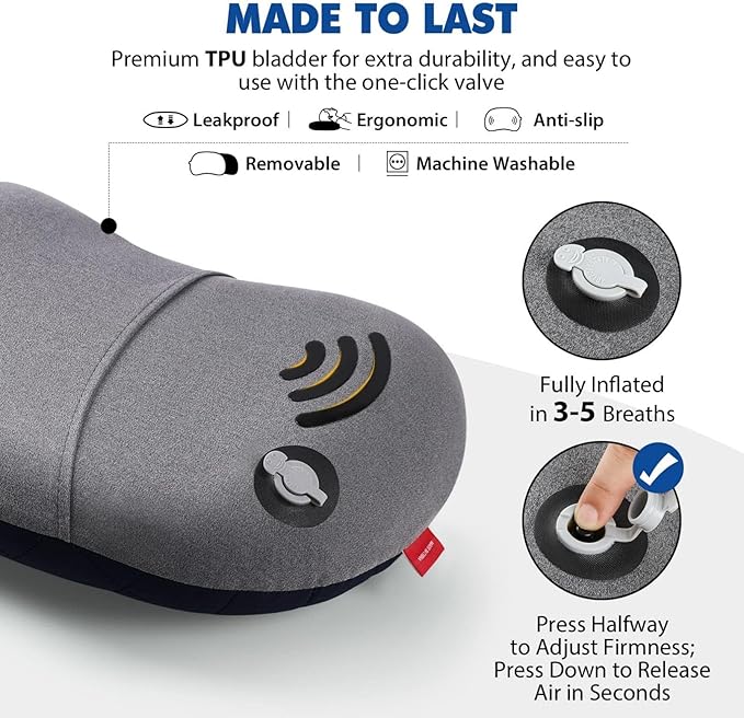 • πŒπ€πŠπ„ π€πˆπ‘ π‹π„π€πŠ πˆπŒππŽπ’π’πˆππ‹π„: Unlike those traditional integrated air pillows which can easily develop a leak and become useless, our camping pillow for backpacking consists of a machine washable foam pillowcase and a removable air bladder which is made of premium thickened TPU to prevent air leaks effectively. Assure you a clean and luxurious night sleep outdoors