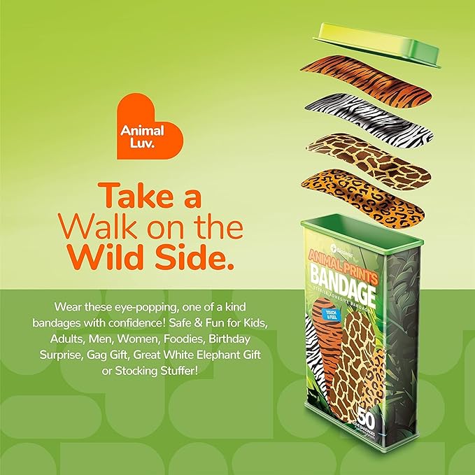 BioSwiss Bandages, Animal Print Shaped Self Adhesive Bandage, Latex Free Sterile Wound Care, 50 Count
