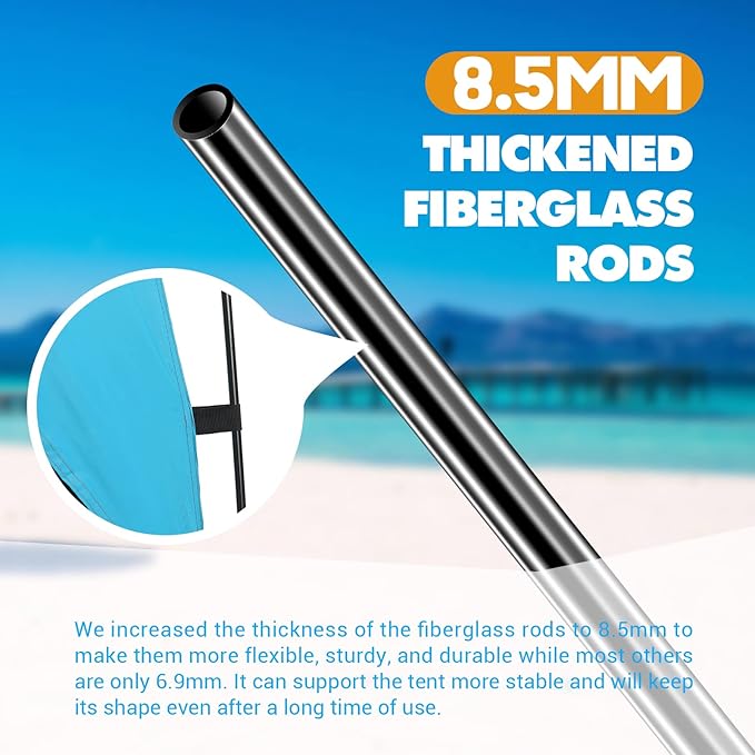 • 【Solid Structure】8.5mm Thickened Fiberglass Rods automatic bracket structure instant setup in seconds. Time-saving reduces effort. We increased the thickness of the fiberglass rods to 8.5mm to make them more flexible, sturdy, and durable. It can support the tent more stable and will keep its shape even after a long time of use