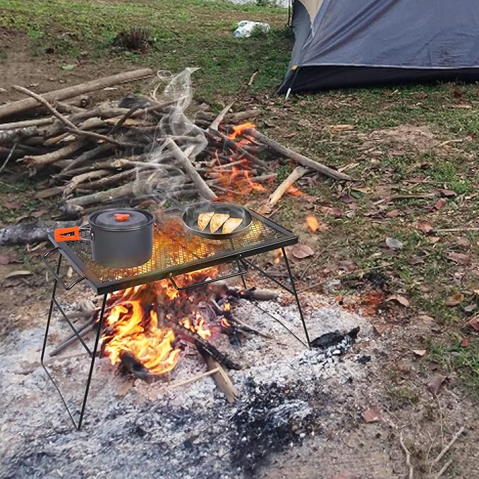 • STURDY GRILL TOP: The camping grill is designed with a steel mesh grill top which can help heat to flow through from a campfire below and accelerate the combustion.