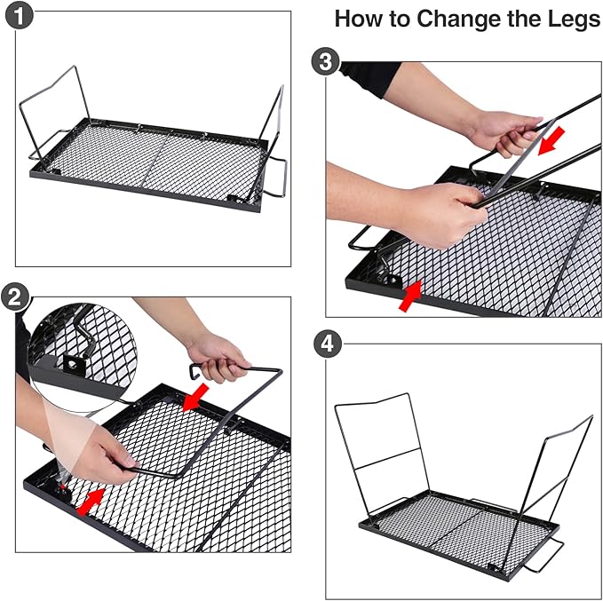 • AVAILABLE 2 HEIGHTS: Equipped with 2 length legs, you can change the height of the camping grill by changing the legs according to your need. Easy to setup and fold within seconds. Easy to carry out with its storage bag.