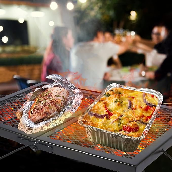 • STURDY GRILL TOP: The camping grill is designed with a steel mesh grill top which can help heat to flow through from a campfire below and accelerate the combustion.