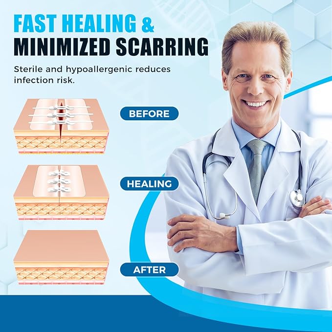 • Pain-Free and Scar-Free: Compared to staples and sutures. it's non-puncture, won't induce fresh pain or trauma to the wound area, and simultaneously minimizes unnecessary scarring caused by sutures