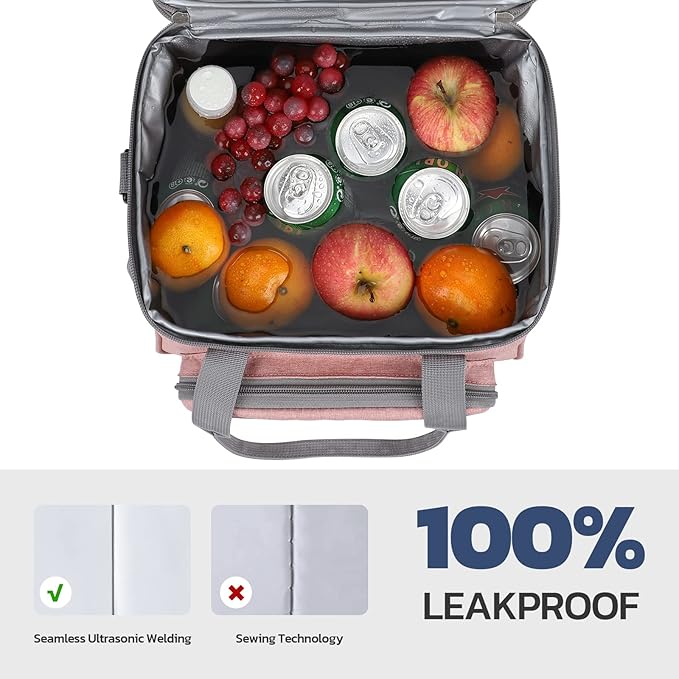 Maelstrom Lunch Bag Women,23L Insulated Lunch Box for Men Women,Expandable Double Deck Lunch Cooler Bag,Lightweight Leakproof Lunch Tote Bag with Side Tissue Pocket,Pink