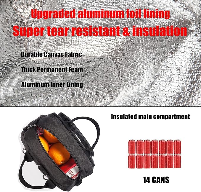 • ★【STURDY & DURABLE】: This lunch bag lining is made of upgraded insulating aluminum foil, which has high quality and tear-resistance and provides long-lasting durability. Exterior made of top Oxford fabric, water-resistant & scratch resistant.