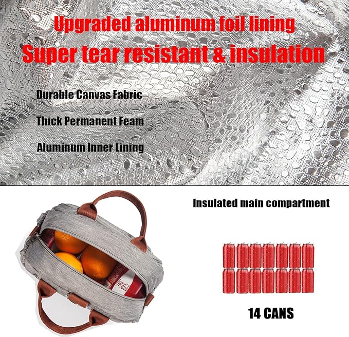 • ★【STURDY & DURABLE】: This lunch bag lining is made of upgraded insulating aluminum foil, which has high quality and tear-resistance and provides long-lasting durability. Exterior made of top Oxford fabric, water-resistant & scratch resistant.