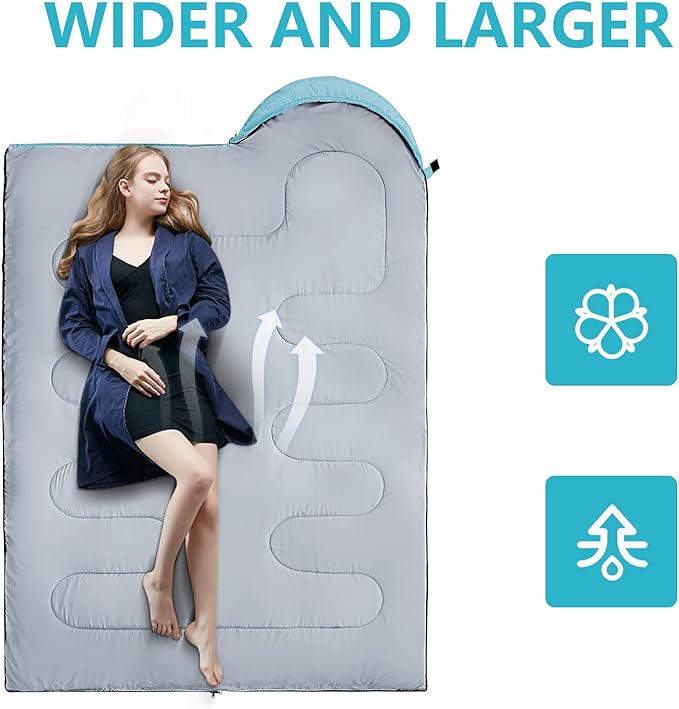 • 【USED FOR 3-4 SEASONS】Our Sleeping Bags can be used for 3-4 seasons.Rated temperature 5(℃)--25(℃).Furthermore,These bags have a waterproof to prevent you from getting damp and keep you warm.You can get a good and relaxing sleep after a tiring day of hiking.A perfect fit for both adults and children. Features an adjustable drawstring.Please note our recommended temperature is for reference only. Different people may have different perception for temperature.