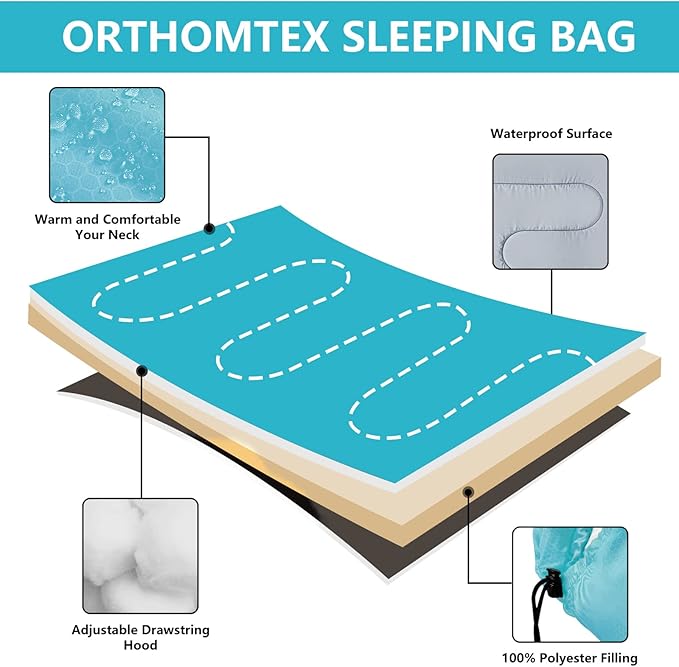 • 【 CLEAN 】 Our waterproof outer shell is easily wiped clean with a damp cloth. In case of heavy soilage the sleeping bag is designed for machine washing as well, ensuring easy maintenance and longevity.