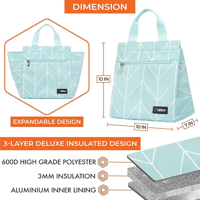 opux Lunch Bag for Women, Insulated Lunch Box Tote for Girls Kids Adult School Work, Reusable Womens Lunch Tote for Office Travel, Cute Small Lunch Tote, Fits 12 Cans - Chevron Teal