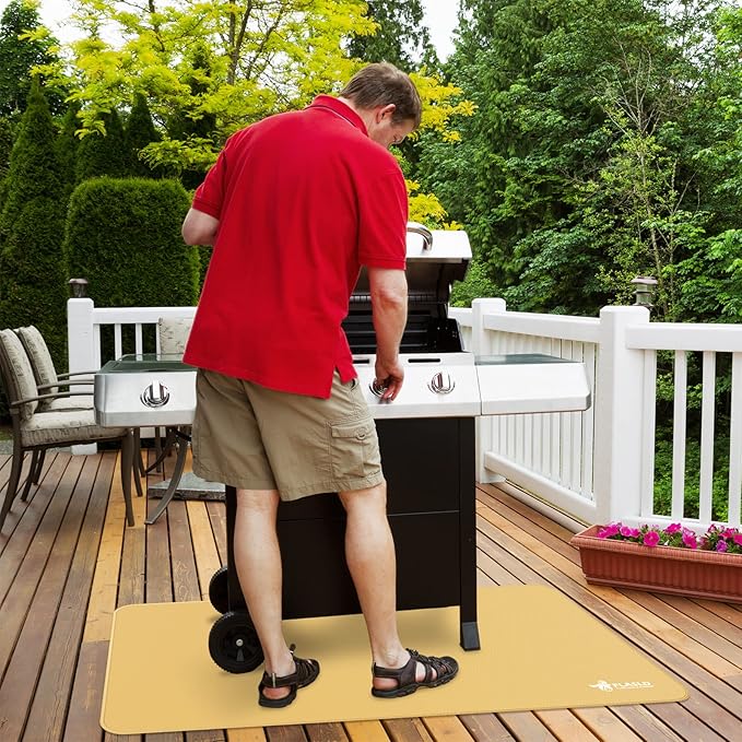 • Easy to Clean: The FLASLD under grill mat is waterproof and oil resistant, it traps spills and oils on the top of the mat instead of absorbing them, the FLASLD grill mat is easy to clean with mild soapy water or spray with a water hose, In litter seconds, it will look brand new again with no scrubbing or harsh cleaning chemicals.