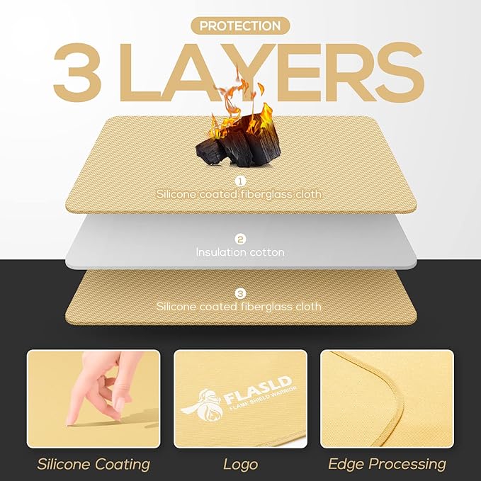 • Multifunctional Fireproof Mat: The grill mat can be used in a variety of scenarios, outdoor camping fire protection, indoor home fire protection, various grill, smoker, tent stove, fire pit, fireplace, stove, oil space heater, cooktop, chiminea, hearth, cooker.