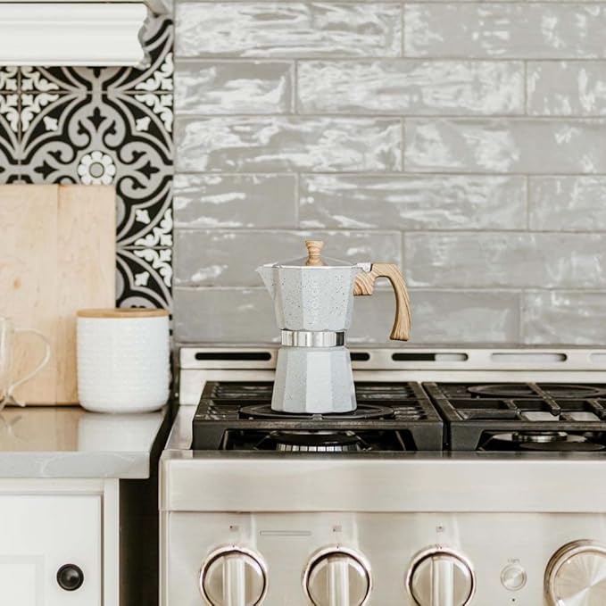 • ⭐ [ Premium Stone finish is 20x more durable than normal paint ] The Milano Stone series has a premium stone finish which is 20x more durable than ordinary enamel. This finish will maintain longer than other paints and has a hand applied specked paint. So every moka pot is slightly different than the other.