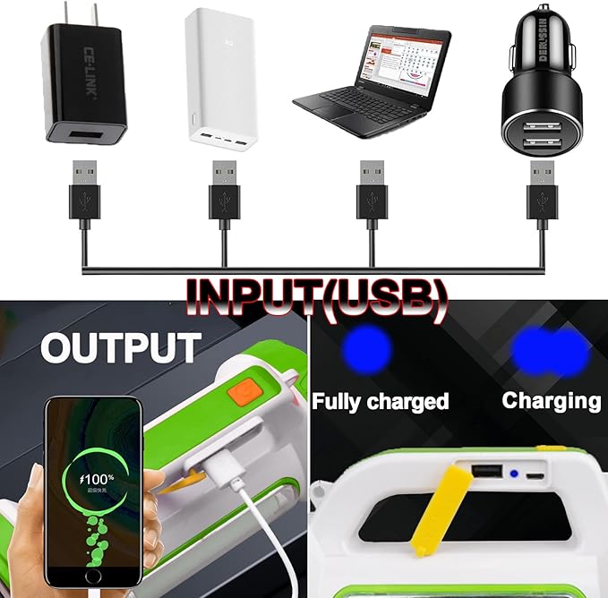 • USB Rechargeable & Large Capacity Power Bank:Micro USB charging cable is included, the camping lantern can be input power or output power as a power bank. Outdoors as an emergency power source to charge other devices. The lantern has a built-in Upgraded version high-efficiency rechargeable large-capacity 4000mAh battery, which can last for more than 24 hours in low-light mode. It lasts longer than other lantern lighting and has longer battery life
