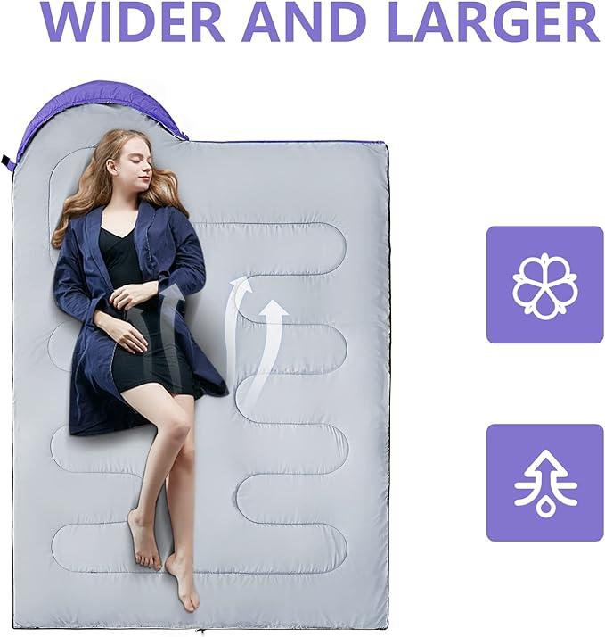 • 【USED FOR 3-4 SEASONS】Our Sleeping Bags can be used for 3-4 seasons.Rated temperature 5(℃)--25(℃).Furthermore,These bags have a waterproof to prevent you from getting damp and keep you warm.You can get a good and relaxing sleep after a tiring day of hiking.A perfect fit for both adults and children. Features an adjustable drawstring.Please note our recommended temperature is for reference only. Different people may have different perception for temperature.