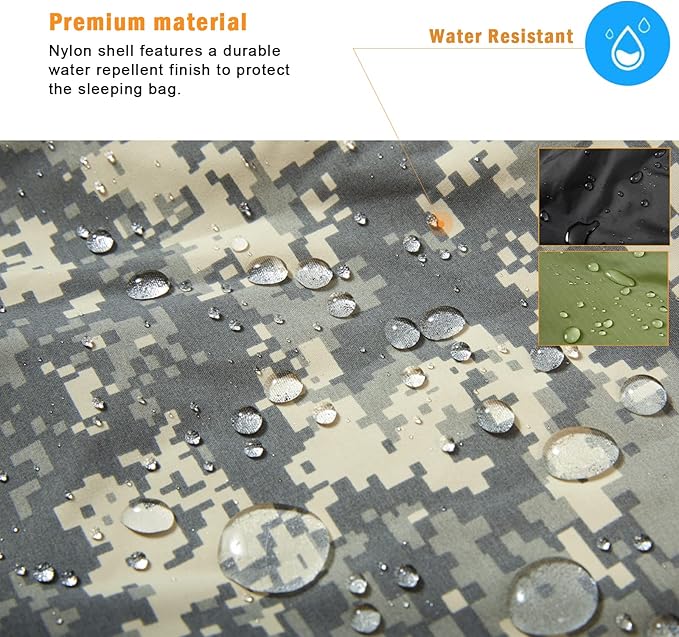 • MT Military Army Modular Sleeping Bag System(4-Piece) Assembly Includes Patrol Sleeping Bag, Intermediate Sleeping Bag, Bivy Cover and Stuff Sack. Mummy Style. A variety of combinations to meet the survival environment from 30 degrees above zero to 40 degrees below zero. It is made of Water-resistant and scratch-resistant high-strength nylon surface, thickened nylon tightening belt. Filling: Polarauard HV High-grade military filling material, high fluffy, compression resistant.