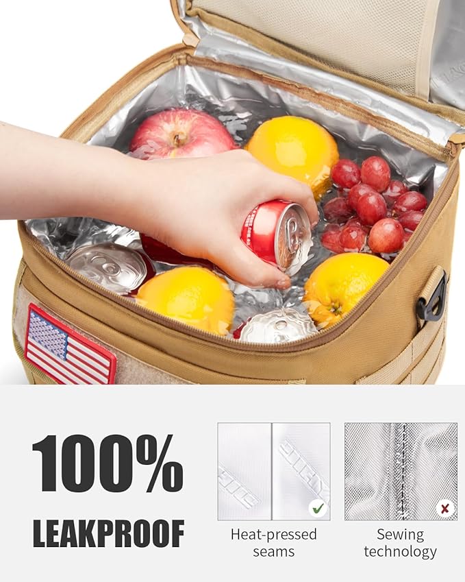 • Tactical & Practical Design: This insulated cooler bag combines outdoor ruggedness with tactical versatility. Includes an adjustable strap for easy carry and a front pocket for personalization. This lunch box cooler can be messenger bag or a handbag