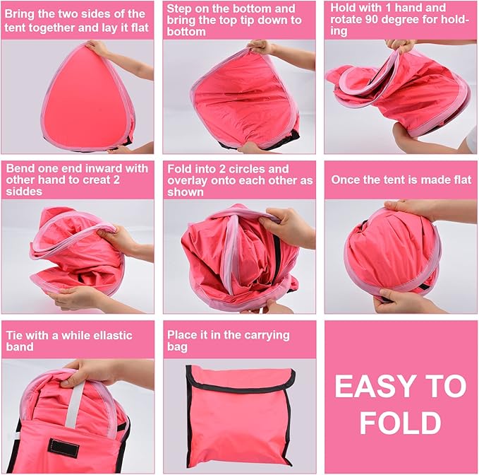 • 🌴PACKING CONTENTS🌴 -- Comes with a pet tent in rose red with a length of 31.51 in/80 cm, width of 19.69 in/50 cm and height of 21.65 in/55 cm, and a tent storage bag with side-length of 9.84 in/25 cm.