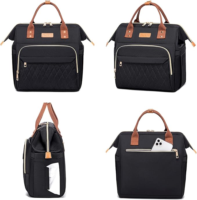 • Multi-Pocket Women's Lunch Bag - The lunch bag for women measures 10.5 x W 6.4 x H 11.8 inches and has a spacious main zippered pocket for storing women's lunchboxes, crackers, fruits, beverages and more. Two elasticized side pockets for cups, tissues or umbrellas. Two front zippered pockets and a privacy back pocket for cell phone and keys.