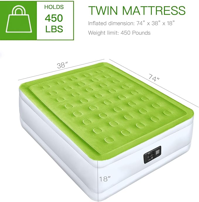 YENING Twin Size Air Mattress with Built in Pump Raised Single Inflatable Bed Blow up Mattressith Camping Airbed 18 Inch Tall