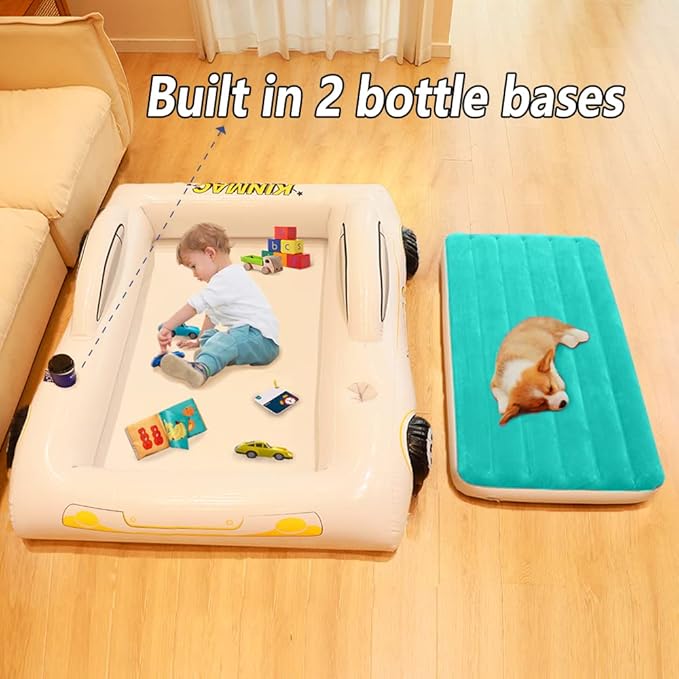 • 🏠🚗【Best Travel Companion For Kids】Home, camping, grandma's, road trip, or vacation travel toddler car air mattress bed is for modern families on the Go. Portable toddler floor bed for kids. Go ahead and get the perfect companion for your kids wherever they are, the blow-up kid's mattress to visit grandparents, for naps at a babysitter’s house, or as a transitional bed.