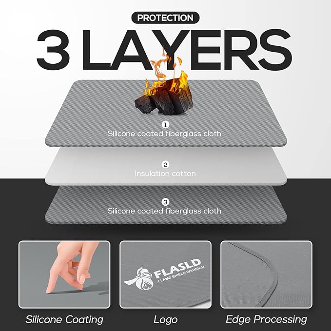 • High Temperature Resistant: FLASLD under grill mat is made of fiberglass with silicone coating on both sides, it can withstand high temperature of 1800°F on both sides, it can resist sparks, charcoal, ash, flames to protect your deck and patio from high temperature damage, Compared to traditional mats, FLASLD grill mats will not melt, curl or crack due to heat.