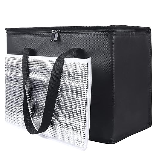 musbus 2 pack Additional Bottom Plate Black Insulated Grocery shopping bag, Delivery,pizza,reusable bags, Sturdy zipper,Collapsible,tote,cooler,thermal,Beach,waterproof heavy duty